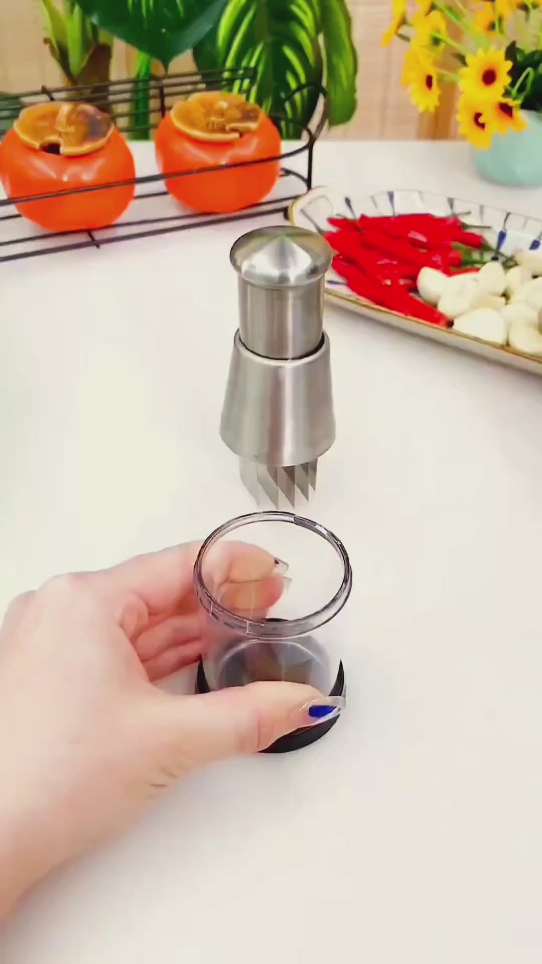 Basta adicionar os ingredientes e pressionar a parte de cima para picá-los em segundos.